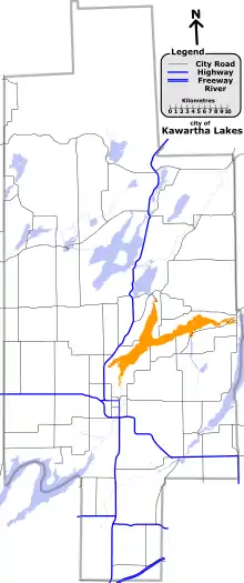 | Settlements | Lindsay, Fenelon Falls, Sturgeon Point, Bobcaygeon, Dunsford |