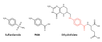 In bacteria, antibacterial sulfonamides act as competitive inhibitors of the enzyme dihydropteroate synthase (DHPS), an enzyme involved in folate synthesis. Sulfonamides are therefore bacteriostatic and inhibit growth and multiplication of bacteria, but do not kill them. Humans, in contrast to bacteria, acquire folate (vitamin B9) through the diet.[4]