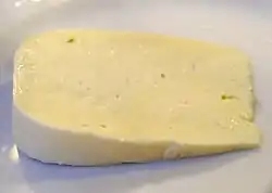 Sulguni (Georgian: სულგუნი, სულუგუნი sulguni, suluguni; Mingrelian: სელეგინ selegin) is a brined Georgian cheese from the Samegrelo region. It has a sour, moderately salty flavor, a dimpled texture, and an elastic consistency; these attributes are the result of the process used, as is the source of its nickname "pickle cheese". Its color ranges from white to pale yellow. Sulguni is often deep-fried, which masks its odor. It is often served in wedges.