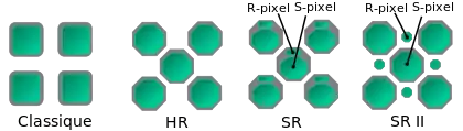 Super CCD is a proprietary charge-coupled device that has been developed by Fujifilm since 1999.[1] The Super CCD uses octagonal, rather than rectangular, pixels. This allows a higher horizontal and vertical resolution (at the expense of diagonal resolution) to be achieved than a traditional sensor of an equivalent pixel count.