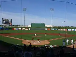 Surprise Stadium is a baseball venue located at the Surprise Recreation Campus athletic facility in Surprise, Arizona, United States. The stadium opened in 2002 and seats 10,714 people.[2][4] It is the spring training facility for the Kansas City Royals and the Texas Rangers.[2] It is also the home of the Arizona Fall League's Surprise Saguaros.[1] The venue was previously the home of the Golden Baseball League's Surprise Fightin' Falcons, which disbanded after their only season in 2005.[6] Surprise Stadium is owned and managed by the City of Surprise Sports and Tourism Department.