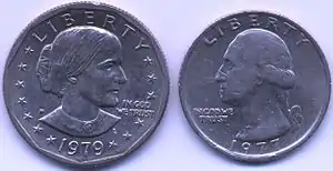 | The obverse of a Susan B. Anthony dollar | |