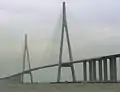 Two towers of the bridge are 306 metres (1,004 ft) high and thus the fifth tallest in the world. The total bridge length is 8,206 metres (26,923 ft). Construction began in June 2003, and the bridge was linked up in June 2007. The bridge was opened to traffic on 25 May 2008[3] and was officially opened on 30 June 2008.[4] Construction has been estimated to cost about US$1.7 billion.
