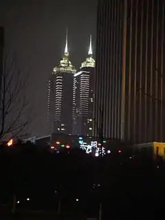 The towers bear a striking resemblance to the One Liberty Place skyscraper complex in Philadelphia, United States.