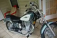 The LS650 Savage was the first cruiser manufactured by Suzuki in 1986. The Kawasaki Vulcan 400 entry-level cruiser with a V-twin engine was introduced the same year as the Suzuki Savage, and the Vulcan 500 LTD with a parallel-twin engine was introduced in 1990. One of the few small cruiser motorcycles available with a shaft drive as an alternative to either chain or belt final drive, the Yamaha Virago 535 was introduced in 1987. Honda launched the Shadow VLX, with a 583 cc V-twin for the 1988 model year to compete with the single-cylinder Savage. The Savage's persona was a bike that stayed out of harm's way, with a torquey engine (although underpowered for its displacement) that made few demands on the rider.[3][19][20][21]