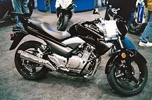 The Suzuki GW250 is a 248 cc (15.1 cu in) entry-level standard motorcycle sold in multiple markets, including Australia, Asia and Europe.[1] It is called the Inazuma 250 in the EU and the GSR250 in Japan. There is also an F (or) S version (250F, 250S) which is the faired version of the bike for some markets outside of the EU. It is used by various police services including China, Japan and USA. Due to EU safety regulations, Inazuma was discontinued in Europe, as ABS is mandatory from 1/2017 for all motorcycles with more than 125cc, and there are no plans for ABS equipped Inazuma.