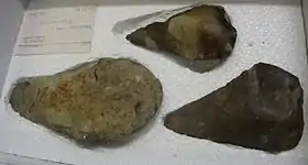 The area was already known for the finds of numerous Palaeolithic-era handaxes—mostly Acheulean and Clactonian artifacts, some as much as 400,000 years old—when in 1935/1936 work at Barnfield Pit uncovered two fossilised skull fragments. These fragments came to be known as the remains of Swanscombe Man but were later found to have belonged to a young woman.[7] The Swanscombe skull has been identified as early Neanderthal[8] or pre-Neanderthal,[9] dating to the Hoxnian Interglacial around 400,000 years ago.[6]