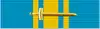 The medal is worn with a blue ribbon with a broad yellow stripe in the middle and one narrow on each side. On the ribbon there is an erect sword in gold or silver if the medal is awarded for actions in combat or during war-like situations. Instead of the medal, the service ribbon can be worn. It's provided with a horizontal sword of gold or silver if the medal awarded for actions in combat or during war-like situations.[2]