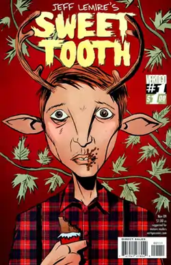 Sweet Tooth is an American comic book limited series written and drawn by Canadian Jeff Lemire and published by DC Comics' Vertigo imprint. Dubbed by some as "Mad Max meets Bambi",[1] it takes place in a mostly rural post-apocalyptic setting where some creatures are human/animal hybrids.
