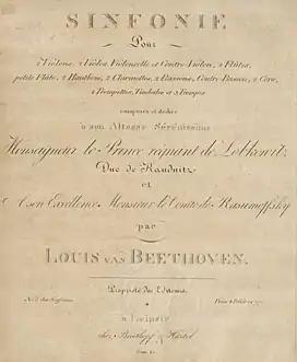 ![]() Cover of the symphony, with the dedication to Prince J. F. M. Lobkowitz and Count Rasumovsky | |