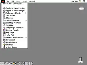- A hierarchical Apple menu (folders within the Apple Menu Items folder would expand into submenus showing their contents. Again, based on a third party control panel; HAM by Microseeds publishing[14])