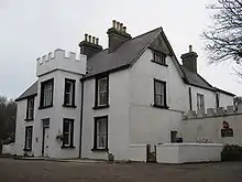 The then landlady and the estate became national and international news in 1894,[22][23] when Mrs. McDonnell was brutally attacked by her bailiff, James Lynchehaun, and left for dead after he set fire to her house. His arrest, and subsequent escape[24] were reported in the media, and became part of the popular culture of the era, with references to the affair in J.M. Synge's drama The Playboy of the Western World,[25] Joyce's Ulysses (1922)[26] and ballads of the time.[27] The house was subsequently rebuilt by McDonnell, and completed in 1902. The estate was purchased from McDonnell's son, Leslie Elliot, by the Gallagher family in 1942.[28] It currently operates as a bar and hostel. In recent years, the story of Mrs. McDonnell and Lynchehaun has become the subject of fiction, with a book, The Playboy and the Yellow Lady published in 1986,[29] The Veiled Woman of Achill published in 2012 [30]and a 1998 film Love and Rage, starring Daniel Craig as Lynchehaun, and Greta Scacchi as Agnes McDonnell.[31]