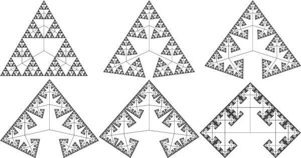 ![]() Sierpiński triangle transforming into a T-square fractal |