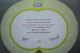 Certificate of Sahithya Academy Award