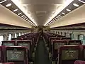 All cars feature single passenger rooms with 2+3 or 2+2 seating, as on the 700 Series Shinkansen.[4] Toilets were installed on odd numbered cars.[4] One end of car 7 features four wheelchair accessible seats, also provide for the fastening of wheelchairs, and there are two foldable wheelchairs.[6] The toilet next to the handicapped area was built to be accessible by wheelchair, with automatic sliding doors, wider space to allow a wheelchair to turn around, and handrails.[7] The train has no restaurant or bar,[4] but was equipped with vending machines, while Business Car passengers also get seat service.[7] Certain cars were equipped with on-board telephones, in anticipation of the construction of a base system.[7]