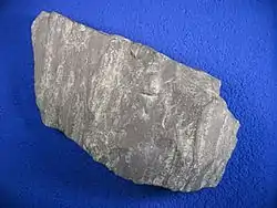 Taconite (IPA: ['tækənaɪt]) is a variety of iron formation, an iron-bearing (over 15% iron) sedimentary rock, in which the iron minerals are interlayered with quartz, chert, or carbonate. The name "taconyte" was coined by Horace Vaughn Winchell (1865–1923) – son of Newton Horace Winchell, the Minnesota State Geologist – during their pioneering investigations of the Precambrian Biwabik Iron Formation of northeastern Minnesota. He believed the sedimentary rock sequence hosting the iron-formation was correlative with the Taconic orogeny of New England, and referred to the unfamiliar and as-yet-unnamed iron-bearing rock as the 'taconic rock' or taconyte.[1]