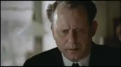 In a voice-over, Arnold explains that Furtwängler was exonerated at the later hearings but boasts that his questioning "winged" him. Actual footage of the real Furtwängler shows him shaking hands with Propaganda Minister Joseph Goebbels after a concert. The conductor surreptitiously wipes his hands with a cloth after touching the Nazi.
