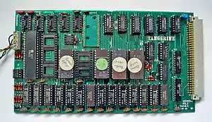 The Tangerine Microtan 65 (sometimes abbreviated M65) is a 6502 based single board microcomputer, first sold in 1979, which could be expanded into, what was for its day, a comprehensive and powerful system. The design became the basis for what later became the ORIC ATMOS and later computers, which has similar keyboard addressing and tape I/O as in the Microtan 65. The Microtan 65 has a single step function that can be used for debugging at the hardware level. The computer was available as ready-built boards or as kits consisting of board and components requiring soldering together.