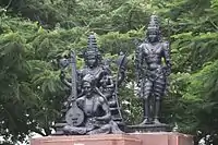 34 well-sculptured bronze statues, mounted on high platforms, of people who played iconic role in the development of Hyderabad and Telugu culture along the Tank Bund road.[2] The statues were installed by the then Chief Minister of Andhra Pradesh, N. T. Rama Rao. A committee with members from various regions of Andhra Pradesh shortlisted personalities for the statues.[3]