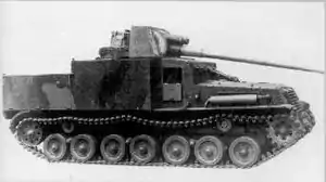 The Ho-Ri was a more powerful tank destroyer (gun tank) using a 105 mm cannon in place of the 75 mm design and an additional 37 mm gun. It was to use the Type 5 Chi-Ri tank chassis. The superstructure for the main gun was placed at the rear, the engine was positioned in the center area of the chassis and the driver's station was in the front hull section; all similar in design to the German Ferdinand/Elefant heavy tank destroyer.[110] Another version was to have a twin 25 mm anti-aircraft gun on top of the rear superstructure.[111] According to several sources, no prototypes of the Ho-Ri were known to have been completed.[95][112][113]