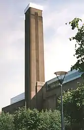 The southern third of the building was retained by the French State owned power company EDF Energy as an electrical substation. In 2006, the company released the western half of this holding[12] and plans were made to replace the structure with a tower extension to the museum, initially planned to be completed in 2015. The tower was to be built over the old oil storage tanks, which would be converted to a performance art space. Structural, geotechnical, civil, and façade engineering and environmental consultancy was undertaken by Ramboll between 2008 and 2016.[13]