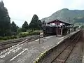 The rear of the Minami Aso station building. The track in the foreground is JR's.
