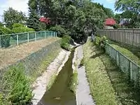 In June 2005, the city performed a water quality study that revealed the presence of high levels of E. coli bacteria and other contaminants.[2] Periodic spills from adjacent industrial lands have also increased contamination. Due to the poor water quality and the engineered riverbanks, the creek shows little signs of life.
