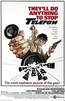 Telefon is a 1977 spy film directed by Don Siegel and starring Charles Bronson, Lee Remick and Donald Pleasence.[1] The screenplay by Peter Hyams and Stirling Silliphant is based on the 1975 novel by Walter Wager.