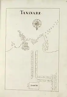 Tenavaram's gold-copper gilded roofs earned it fame amongst pilgrims and sailors, due to navigational purposes and its contribution to the town's appearance as a "golden city." Encompassed by a quadrangular cloister which opened under verandahs and terraces to the various deities' shrines, the complex contained gardens of shrubs and trees which priests used to pluck offerings to the deities.[2][21] The Portuguese historian Diogo do Couto stated that along with Adam's Peak, Tenavarai was the most celebrated temple on the island, and the most visited pilgrimage site of the south with a circuit of a full league, while his fellow Portuguese historian De Quieroz compares the temple port town's splendor to that of the Koneswaram temple of Trincomalee and states that Lord Vishnu was the primary deity of the destroyed shrine of Tenavarai.[22][23]