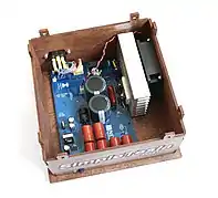 - Switched or Solid State Tesla Coil (SSTC): These use power semiconductor devices, usually thyristors or transistors such as MOSFETs or IGBTs,[17] triggered by a solid state oscillator circuit to switch pulses of voltage from a DC power supply through the primary winding.[33] They provide pulsed excitation without the disadvantages of a spark gap: the loud noise, high temperatures, and poor efficiency. The voltage, frequency, and excitation waveform can be finely controllable. SSTCs are used in most commercial, industrial, and research applications[17] as well as higher quality entertainment coils.