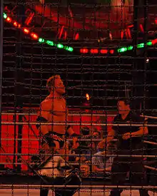 Martin debuted in the World Wrestling Federation on the October 25, 1998, episode of Sunday Night Heat as an unnamed bodyguard for the band Mötley Crüe, who were performing on the show. In a scripted event, Martin threw an overzealous fan off the stage during the band's rehearsal. On the December 14, 1998, episode of Raw is War, Martin aligned himself with WWF Champion The Rock by attacking The Rock's rival Triple H.[1] A week later on the December 21 episode of Raw, Martin made his in ring debut teaming with The Rock to defeat Triple H and X-Pac by DQ. Martin went on to join The Corporation, a wrestling stable consisting of numerous other wrestlers. During this time, he received the ring name "Test", since he usually checked the mic saying "test...test..."[7][8]