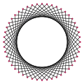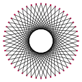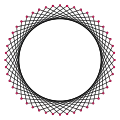 A tetracontaoctagram is a 48-sided star polygon. There are seven regular forms given by Schläfli symbols {48/5}, {48/7}, {48/11}, {48/13}, {48/17}, {48/19}, and {48/23}, as well as 16 compound star figures with the same vertex configuration.