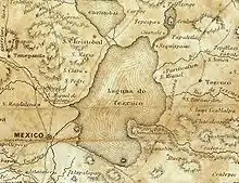 modern Nahuatl pronunciation ) is a city and municipality located in the State of Mexico, 25 km northeast of Mexico City.[1] In the pre-Hispanic era, this was a major Aztec city on the shores of Lake Texcoco. After the Conquest, the city was initially the second most important after Mexico City, but its importance faded over time, becoming more rural in character.[2] Over the colonial and post-independence periods, most of Lake Texcoco was drained and the city is no longer on the shore and much of the municipality is on lakebed.[1] Numerous Aztec archeological finds have been discovered here, including the 125 tonne stone statue of Tlaloc, which now resides at the Museum of Anthropology in Mexico City.[3][4]