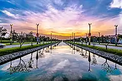 Utthayan Road (ถนนอุทยาน), the road toward Phutthamonthon, is one of the most beautiful avenues in Thailand. The road is 90 m wide, about 3,861 m long, and divided into the central avenue and two parallel lanes along both sides. The lightposts along the length of the road is decorated with Hongs (หงส์, a bird in Thai mythology). The road was planned as part of the grand Phutthamonthon project of Field Marshal Plaek Pibulsonggram, the then prime minister, during the 1950s. The project was stalled when he went out of office and only resumed and opened as recently as 27 February 1999. The original name of the road was Aksa (อักษะ), the Thai name for The Axis.