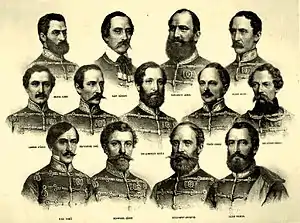The Thirteen Martyrs of Arad (Hungarian: aradi vértanúk) were the thirteen Hungarian rebel generals who were executed by the Austrian Empire on 6 October 1849 in the city of Arad, then part of the Kingdom of Hungary (now in Romania), after the Hungarian Revolution (1848–1849). The execution was ordered by the Austrian general Julius Jacob von Haynau.