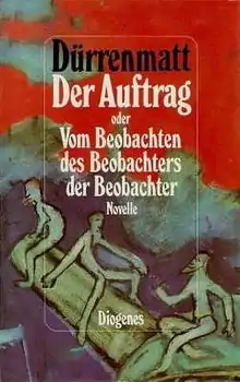 Der Auftrag (English: The Assignment, subtitled Or, on the Observing of the Observer of the Observers) is a 1986 novella by the Swiss writer Friedrich Dürrenmatt. The first English publication appeared in 1988, translated by Joel Agee. The experimental narrative is divided into twenty-four parts, each one a single sentence spanning many pages. In his foreword to the 2008 English language edition, Theodore Ziolkowski notes that the inspiration for the twenty-four sentence structure came after listening to a recording of Glenn Gould performing the first half of Bach's The Well-Tempered Clavier I, itself a work in twenty-four movements.[1] Inspiration for the plot came from the Austrian poet Ingeborg Bachmann's unfinished novel The Franza Case, which Dürrenmatt's second wife, documentary filmmaker Charlotte Kerr, was attempting to turn into a film at the time of their meeting.[2]