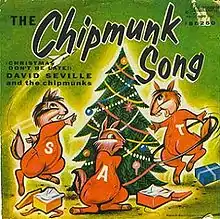 "The Chipmunk Song (Christmas Don't Be Late)" is a novelty Christmas song written by Ross Bagdasarian (under the stage name of David Seville) in 1958. Bagdasarian sang and recorded the song, varying the tape speeds to produce high-pitched "chipmunk" voices, but the recording credits the vocals to Alvin and the Chipmunks, Seville's cartoon band. The song won three Grammy Awards in 1958, for Best Comedy Performance, Best Children's Recording, and Best Engineered Record (non-classical).[1]