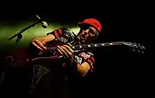 That August, Lu Edmonds was added as a second guitarist.[22] This expanded line-up unsuccessfully tried to recruit the reclusive Syd Barrett to produce their second album.[30] Unable to get Barrett, they settled for his former Pink Floyd bandmate, Nick Mason. In December, this album was released as Music For Pleasure, and was quickly dismissed by critics. Its failure led to the band being dropped from Stiff Records.[31] Scabies was also displeased with the album, and quit the band after the recording. He was replaced by future Culture Club drummer Jon Moss, who played with The Damned until they decided to break up in February 1978.[32]