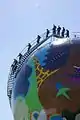The transformation of the former (blue) gas container took several months to complete, from mid July 2009 until the unveiling on June 4 in 2010, with a winter break of two months. The project had 17 toyists from 7 different countries working for 6000 hours, they painted an area of 1250 m2 in multiple layers.[2]