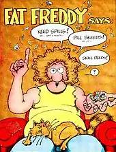 Fat Freddy's Cat appears in many of the stories, spinning off his own cartoon strip (which appeared as part of the Freak Brothers comic page, in the manner of older comic strip double features) and later some full-length episodes.