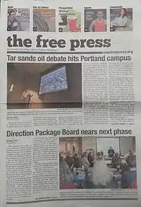 The Free Press is the official campus newspaper of the University of Southern Maine. It publishes a print edition weekly during the academic year, equaling roughly 22 editions a year. The newspaper has a circulation of 3,000 and publishes daily on their website.