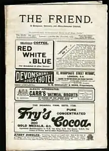 The Friend is a weekly Quaker magazine published in London, UK. It is the only Quaker weekly in the world, and has been published continuously since 1843. It began as a monthly and in January 1892 became a weekly.[1] It is one of the oldest continuously published publications in the world still in operation. Others (e.g. Punch) which began publication before The Friend have had lengthy interruptions in publication and/or have closed down.