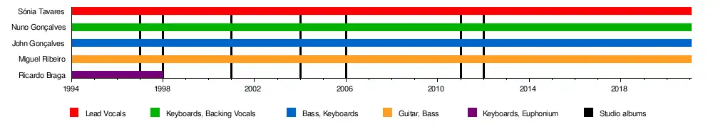 The band performed its first show at the Alcobaça Monastery in July, 1995. This was followed by the Belém Cultural Centre (Lisbon) in September, 1996, and the Labirintho Bar (Porto) in November, 1996.