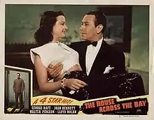 The House Across the Bay is a 1940 film directed by Archie Mayo, starring George Raft and Joan Bennett, produced by Walter Wanger, written by Myles Connolly and Kathryn Scola, and released by United Artists. The supporting cast features Lloyd Nolan, Walter Pidgeon and Gladys George.