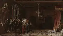 Another source may have been music and opera, since a lyre is shown in the foreground. The Orchestre du Capitole de Toulouse produced Étienne-Nicolas Méhul's opera Stratonice several times whilst Ingres was a violinist with them. The painting shows the moment of the heroine's solo from Méhul's opera. The Assassination of the Duke of Guise was also based on an opera, Giacomo Meyerbeer's Les Huguenots.[5]