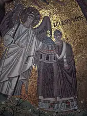Klimt's use of gold was inspired by a trip he had made to Italy in 1903. When he visited Ravenna he saw the Byzantine mosaics in the Church of San Vitale. For Klimt, the flatness of the mosaics and their lack of perspective and depth only enhanced their golden brilliance, and he started to make unprecedented use of gold and silver leaf in his own work.[8]