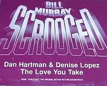 "The Love You Take" is a duet song by American musician-singer-songwriter Dan Hartman and freestyle\dance singer Denise Lopez. As part of the official soundtrack for the 1988 comedy film Scrooged, starring Bill Murray, it would be released as a single. The song was written and produced by Hartman.[2][3]