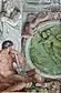 | Triumphant marine scene | Painted by Agostino Carracci, this scene was described by Bellori as the triumph (apotheosis) of the nereid Galatea.[7] Since then, various scholars have postulated that the central couple represent Neptune and Salacia,[8] Glaucus and Scylla,[9] Venus and Triton,[7] and Peleus and Thetis.[7][9] This scene is the most sexually explicit of the whole series because of the placement of the principal male figure's hand on the pubic region of his companion. It is even more explicit in Agostino's cartoon found in the National Gallery in London. In the cartoon, there is no intervening cloth between his groping hand and her flesh. The scowling head of the principal male is a parody of an ancient bust of Emperor Caracalla which would have been found in a niche in the gallery below.[7] | |