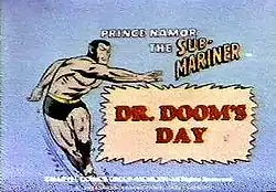 - The X-Men — The original lineup of the Angel, the Beast, Cyclops, Iceman, and Marvel Girl appeared in a Sub-Mariner episode, "Dr. Doom's Day / The Doomed Allegiance / Tug of Death". The story was an adaptation of Fantastic Four #6 (Sept. 1962), but since Grantray-Lawrence Animation did not own rights to the Fantastic Four, the producers substituted the X-Men — although referring to them instead as "Allies for Peace". However, the characters retained their original designs and individual names from the comics.