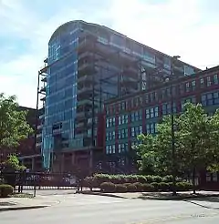 The Pinnacle is a postmodern 2006 completed 181 foot 14 story condominium high-rise in downtown Cleveland's historic Warehouse District.[1] The Pinnacle faces the off ramp of the Cleveland Memorial Shoreway or Ohio State Route (SR) 2. The building extends back for nearly a city block. It sits on top of a parking structure that was built before the tower. It is the second tallest building in the Warehouse District after the Crittenden Apartments.